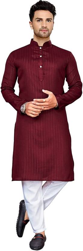 Vibhuti Men Solid Straight Kurta (Maroon)