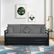 Vibrant Interior SOFIAGREY6X4 3 Seater Single Metal Pull Out Sofa Cum Bed (Finish Color - Black Delivery Condition - Knock Down)