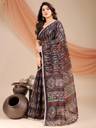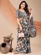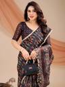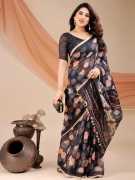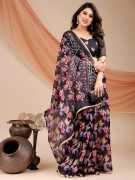 Exude timeless elegance in this classic black georgette saree. The fluid fabric drapes like a dream, creating a flattering silhouette. A versatile piece, it can be dressed up with statement jewelry for a formal occasion or kept understated for a sophisticated evening look.