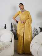 Banarasi, Gold Woven, Wedding Look, Silk, Pallu detailing, Zari border, Kanjeevaram