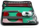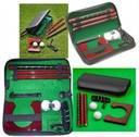 The Golf set is perfect of office / Home putting practice., Great for people on the go, those who travel alot (imagine them practicing in their hotel room) or for use in the office or at home., Best way to take a break from office stress, Nice and compact. Easily fits into luggage or carry on / duffle bag., Packaged in sleek Foldable Pouch.