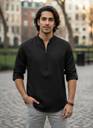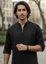 UNIFAV Men Solid Cotton Blend Straight Kurta (Black)