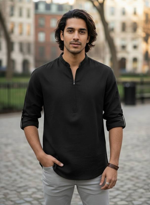 This Cotton Blend Short Kurta is perfect for men who value style and comfort. Its versatile design makes it ideal for any occasion—festivals, parties, or casual outings. Product Details 📋 👨‍🦰 Gender: Men 🎨 Pattern: Solid 🧵 Design Type: Plain 🔘 Closure: Zipper 👕 Sleeve: Full Sleeve ⬆️ Waist Rise: Mid-Rise 🪡 Hemline: Curved 🌿 Fabric: Cotton Blend 📏 Product Length: Short 📦 Material & Care 🧺 Fabric: Cotton Blend Wash: Suitable for hand wash and machine wash. How to Style 🎯 Pair it with dark-wash denim or linen trousers for a casual look. Dress it up with a pair of churidar or slim-fit pants for festive occasions. Add leather sandals or loafers and a wristwatch for a classy finish. Regular the sleeves for a relaxed vibe during daytime events. This shirt kurta seamlessly blends traditional elegance with modern styling, making it a wardrobe essential for every man! 👌