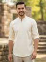 Vida Loca Men Solid Cotton Blend A-line Kurta (Beige)