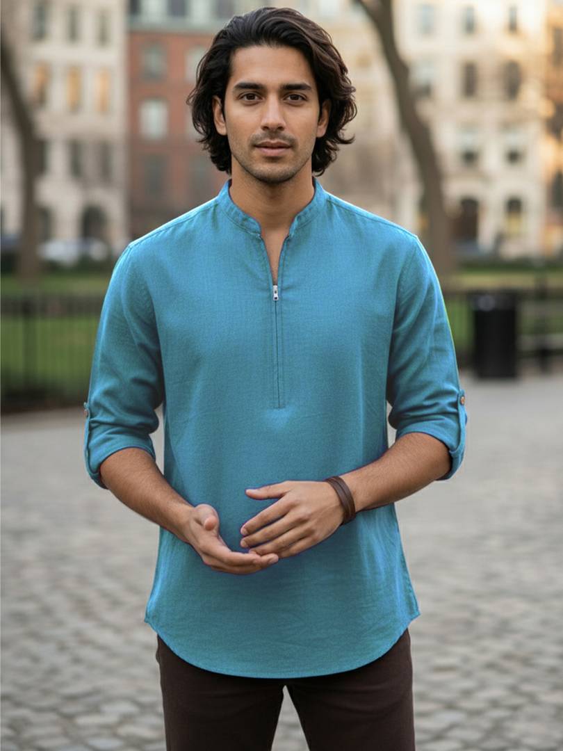 This Cotton Blend Short Kurta is perfect for men who value style and comfort. Its versatile design makes it ideal for any occasion—festivals, parties, or casual outings. Product Details 📋 👨‍🦰 Gender: Men 🎨 Pattern: Solid 🧵 Design Type: Plain 🔘 Closure: Zipper 👕 Sleeve: Full Sleeve ⬆️ Waist Rise: Mid-Rise 🪡 Hemline: Curved 🌿 Fabric: Cotton Blend 📏 Product Length: Short 📦 Material & Care 🧺 Fabric: Cotton Blend Wash: Suitable for hand wash and machine wash. How to Style 🎯 Pair it with dark-wash denim or linen trousers for a casual look. Dress it up with a pair of churidar or slim-fit pants for festive occasions. Add leather sandals or loafers and a wristwatch for a classy finish. Regular the sleeves for a relaxed vibe during daytime events. This shirt kurta seamlessly blends traditional elegance with modern styling, making it a wardrobe essential for every man! 👌