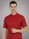 FireFish Men Solid Cotton Blend A-line Kurta (Red)