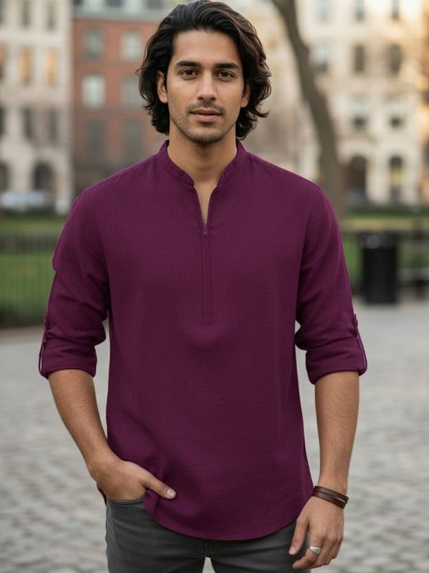 This Cotton Blend Short Kurta is perfect for men who value style and comfort. Its versatile design makes it ideal for any occasion—festivals, parties, or casual outings. Product Details 📋 👨🦰 Gender: Men 🎨 Pattern: Solid 🧵 Design Type: Plain 🔘 Closure: Zipper 👕 Sleeve: Full Sleeve ⬆️ Waist Rise: Mid-Rise 🪡 Hemline: Curved 🌿 Fabric: Cotton Blend 📏 Product Length: Short 📦 Material & Care 🧺 Fabric: Cotton Blend Wash: Suitable for hand wash and machine wash. How to Style 🎯 Pair it with dark-wash denim or linen trousers for a casual look. Dress it up with a pair of churidar or slim-fit pants for festive occasions. Add leather sandals or loafers and a wristwatch for a classy finish. Regular the sleeves for a relaxed vibe during daytime events. This shirt kurta seamlessly blends traditional elegance with modern styling, making it a wardrobe essential for every man! 👌