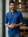 UNIFAV Men Solid Straight Kurta (Blue)