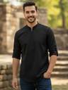 Vida Loca Men Solid Cotton Blend A-line Kurta  (Black)