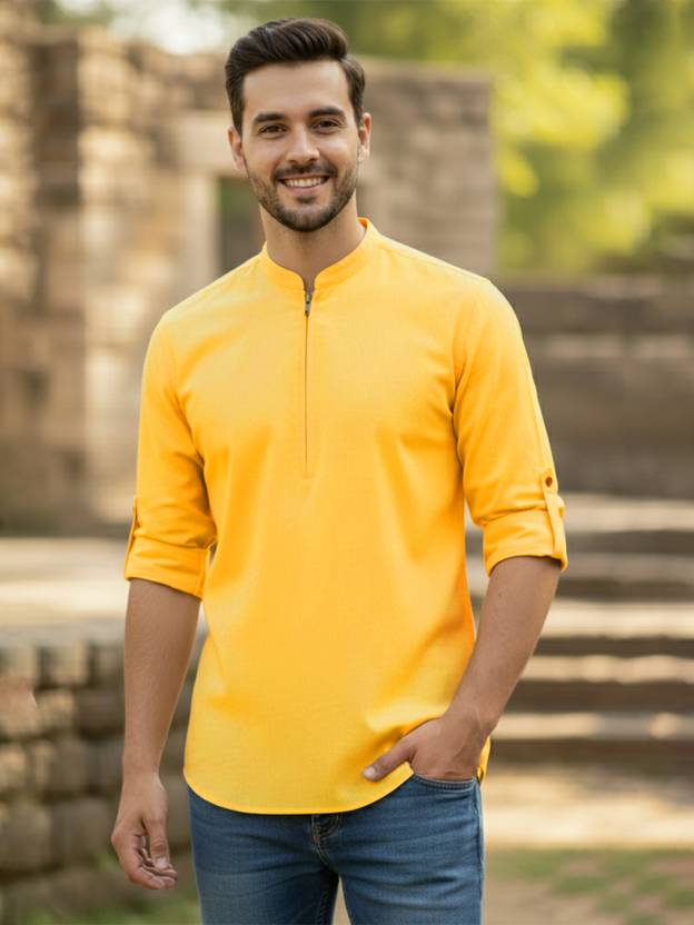 This Cotton Blend Short Kurta is perfect for men who value style and comfort. Its versatile design makes it ideal for any occasion—festivals, parties, or casual outings. Product Details 📋 👨🦰 Gender: Men 🎨 Pattern: Solid 🧵 Design Type: Plain 🔘 Closure: Zipper 👕 Sleeve: Full Sleeve ⬆️ Waist Rise: Mid-Rise 🪡 Hemline: Curved 🌿 Fabric: Cotton Blend 📏 Product Length: Short 📦 Material & Care 🧺 Fabric: Cotton Blend Wash: Suitable for hand wash and machine wash. How to Style 🎯 Pair it with dark-wash denim or linen trousers for a casual look. Dress it up with a pair of churidar or slim-fit pants for festive occasions. Add leather sandals or loafers and a wristwatch for a classy finish. Regular the sleeves for a relaxed vibe during daytime events. This shirt kurta seamlessly blends traditional elegance with modern styling, making it a wardrobe essential for every man! 👌