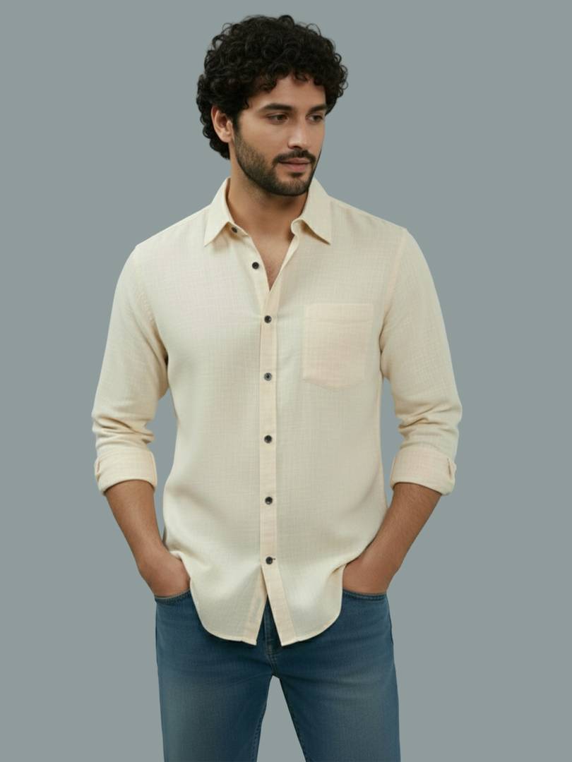 Men Slim Fit Solid Spread Collar Casual Shirt