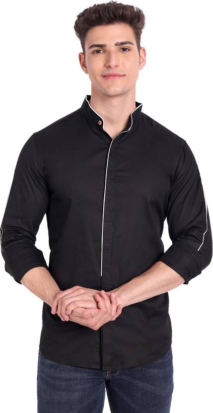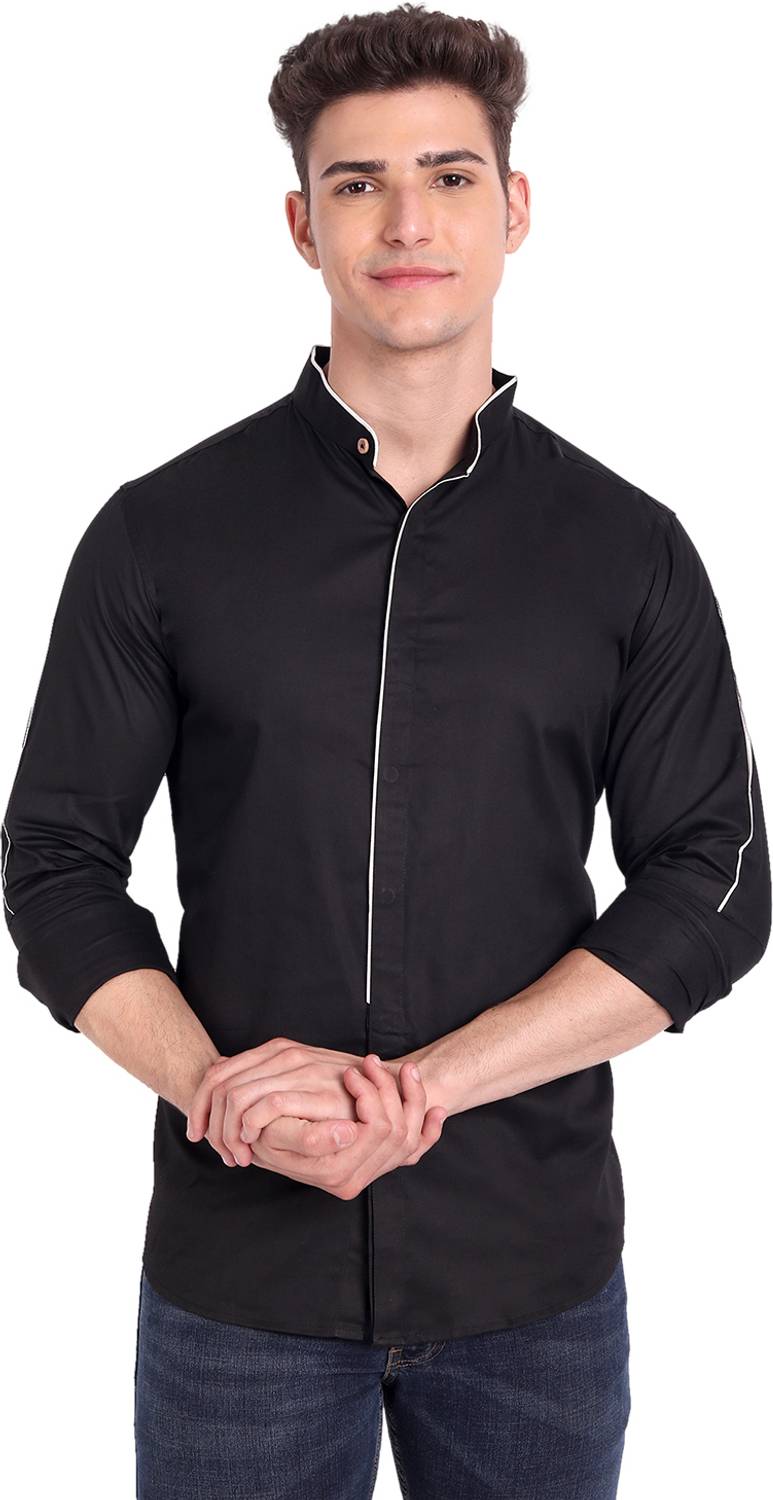 Men Slim Fit Solid Mandarin Collar Casual Shirt