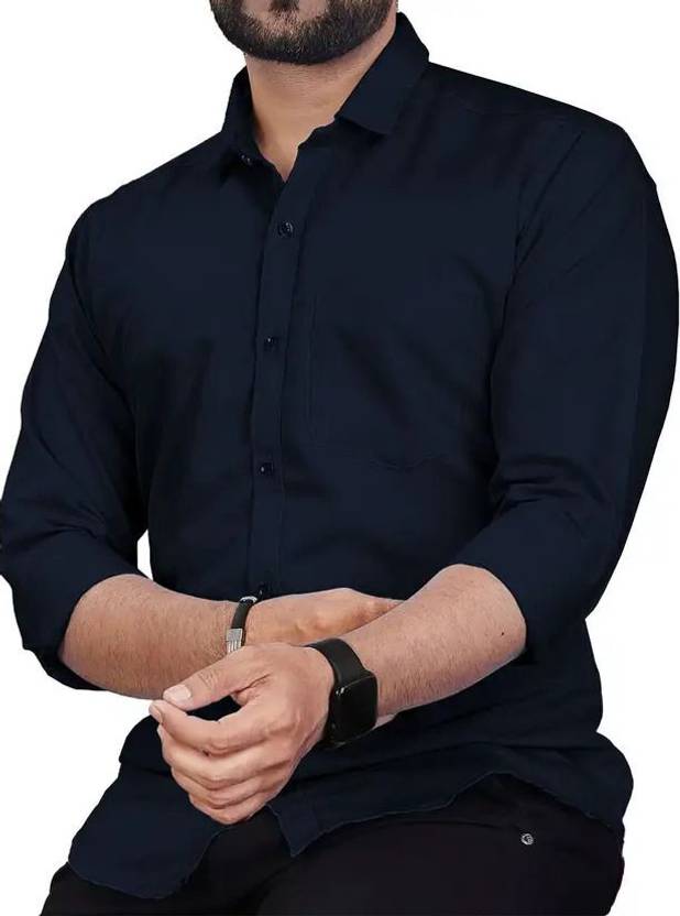 Men Slim Fit Solid Curved Collar Formal Shirt