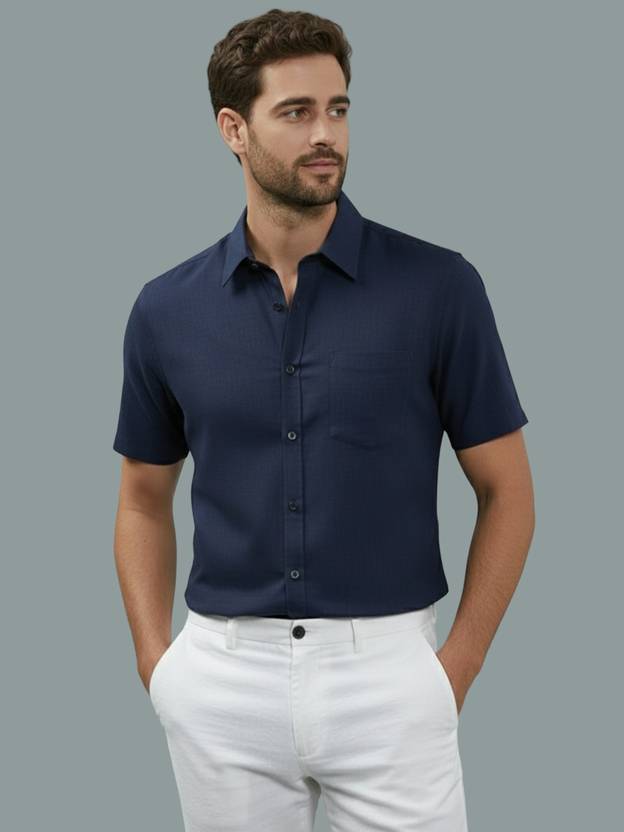 UNIFAV Men Solid Casual Dark Blue Shirt