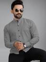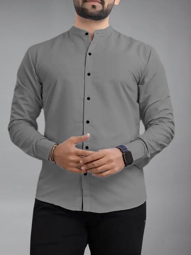 Men Slim Fit Solid Mandarin Collar Casual Shirt
