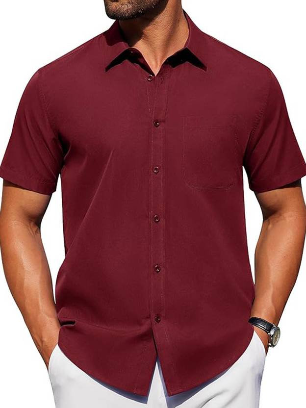 Men Slim Fit Solid Spread Collar Casual Shirt