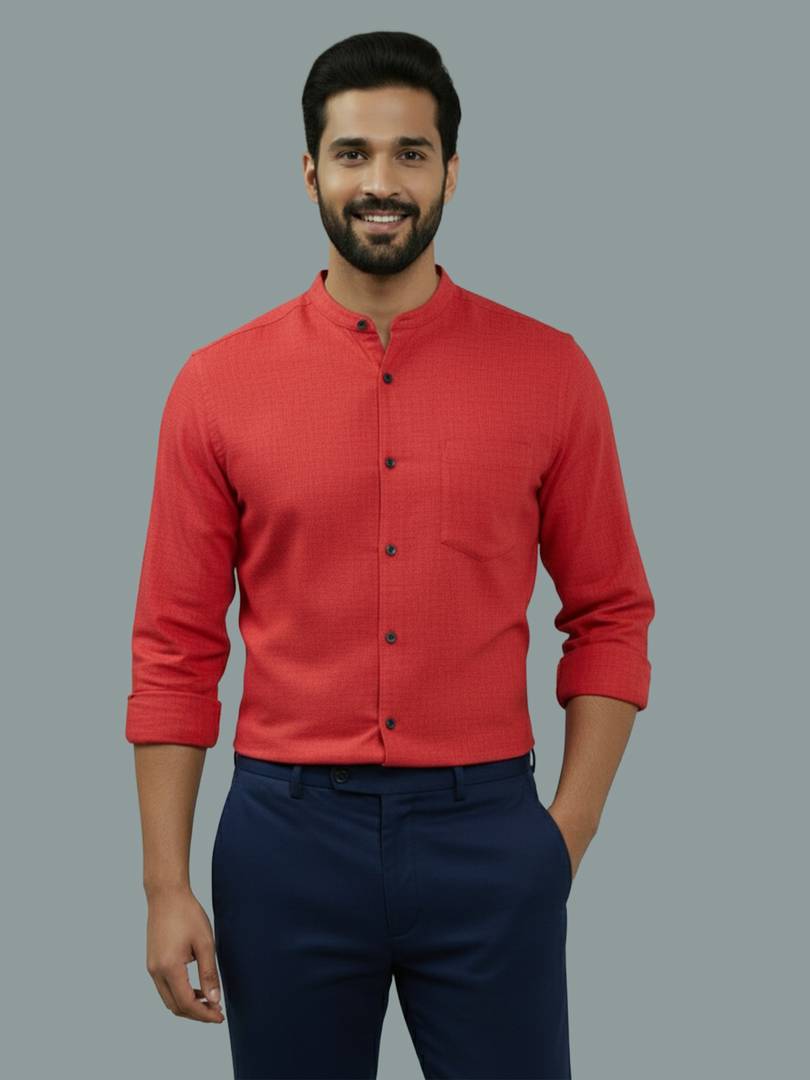 FireFish Men Slim Fit Solid Mandarin Collar Casual Shirt