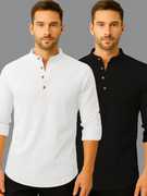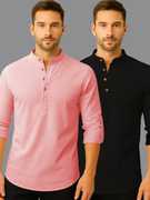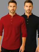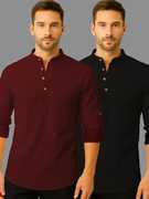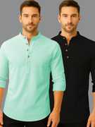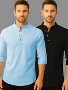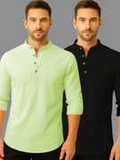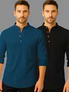 Pack of 2 Men Solid Cotton Blend Straight Kurta (Light Blue, Black)