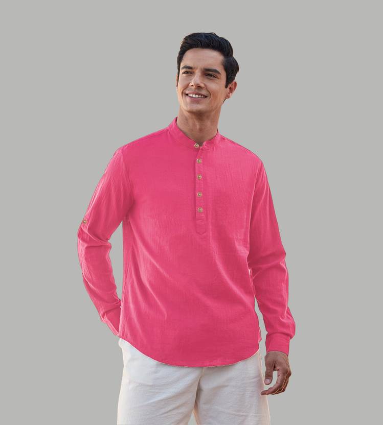 Vida Loca Men Solid Cotton Blend Straight Kurta (Pink)