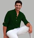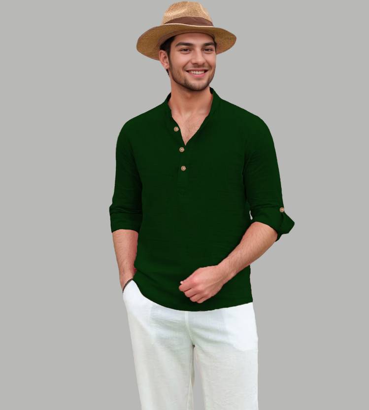 Vida Loca Men Solid Cotton Blend Straight Kurta (Dark Green)