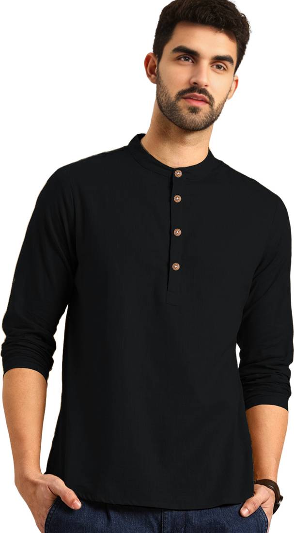Vida Loca Men Solid Pure Cotton Straight Kurta (Black)