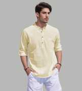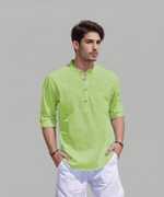 This pure cotton beige short kurta is perfect for men who value style and comfort. Its versatile design makes it ideal for any occasion—festivals, parties, or casual outings. Product Details ?? ????? Gender: Men ?? Pattern: Solid ?? Design Type: Plain ?? Closure: Button ?? Sleeve: Full Sleeve (Roll-Up Option) ?? Waist Rise: Mid-Rise ?? Collar: Mandarin/Chinese ?? Hemline: Curved ?? Fabric: Pure Cotton ?? Product Length: Short ?? Pack of: 1 Material & Care ?? Fabric: 100% Cotton Wash: Suitable for hand wash and machine wash. How to Style ?? Pair it with dark-wash denim or linen trousers for a casual look. Dress it up with a pair of churidar or slim-fit pants for festive occasions. Add leather sandals or loafers and a wristwatch for a classy finish. Roll up the sleeves for a relaxed vibe during daytime events. This short kurta seamlessly blends traditional elegance with modern styling, making it a wardrobe essential for every man! ??