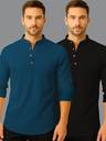 This pure cotton short kurta is perfect for men who value style and comfort. Its versatile design makes it ideal for any occasion—festivals, parties, or casual outings. Product Details 📋 👨🦰 Gender: Men 🎨 Pattern: Solid 🧵 Design Type: Plain 🔘 Closure: Button 👕 Sleeve: Full Sleeve (Roll-Up Option) ⬆️ Waist Rise: Mid-Rise 🪡 Collar: Mandarin/Chinese ✂️ Hemline: Curved 🌿 Fabric: Cotton Blend 📏 Product Length: Short 📦 Pack of: 2 Material & Care 🧺 Fabric: Cotton Blend Wash: Suitable for hand wash and machine wash. How to Style 🎯 Pair it with dark-wash denim or linen trousers for a casual look. Dress it up with a pair of churidar or slim-fit pants for festive occasions. Add leather sandals or loafers and a wristwatch for a classy finish. Roll up the sleeves for a relaxed vibe during daytime events. This short kurta seamlessly blends traditional elegance with modern styling, making it a wardrobe essential for every man! 👌"