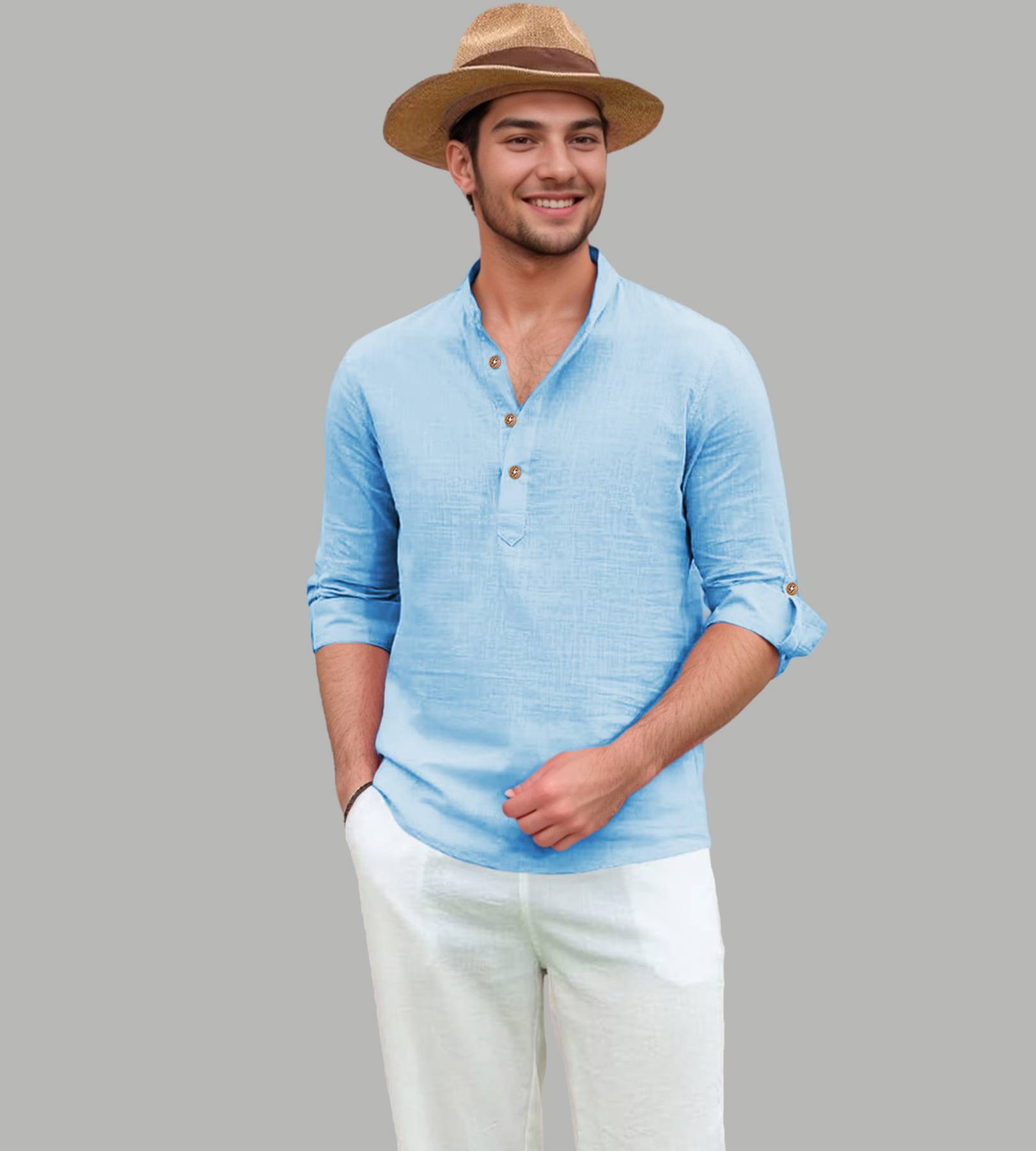 This pure cotton beige short kurta is perfect for men who value style and comfort. Its versatile design makes it ideal for any occasion—festivals, parties, or casual outings. Product Details ?? ????? Gender: Men ?? Pattern: Solid ?? Design Type: Plain ?? Closure: Button ?? Sleeve: Full Sleeve (Roll-Up Option) ?? Waist Rise: Mid-Rise ?? Collar: Mandarin/Chinese ?? Hemline: Curved ?? Fabric: Pure Cotton ?? Product Length: Short ?? Pack of: 1 Material & Care ?? Fabric: 100% Cotton Wash: Suitable for hand wash and machine wash. How to Style ?? Pair it with dark-wash denim or linen trousers for a casual look. Dress it up with a pair of churidar or slim-fit pants for festive occasions. Add leather sandals or loafers and a wristwatch for a classy finish. Roll up the sleeves for a relaxed vibe during daytime events. This short kurta seamlessly blends traditional elegance with modern styling, making it a wardrobe essential for every man! ??