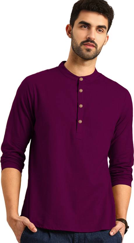 Vida Loca Men Solid Pure Cotton Straight Kurta (Purple)
