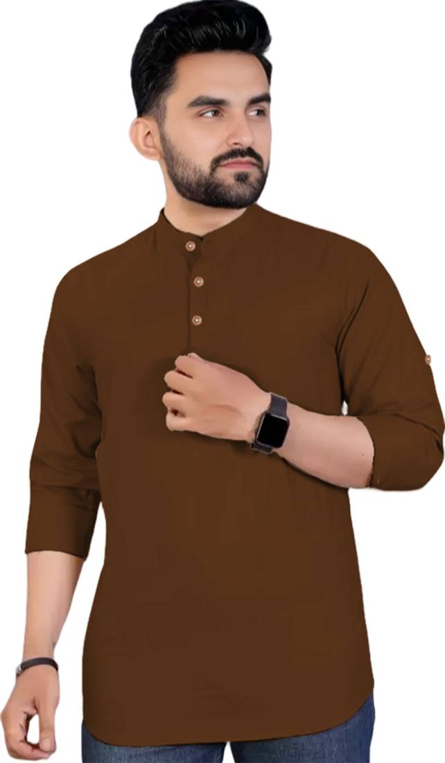This pure cotton beige short kurta is perfect for men who value style and comfort. Its versatile design makes it ideal for any occasion—festivals, parties, or casual outings. Product Details 📋 👨‍🦰 Gender: Men 🎨 Pattern: Solid 🧵 Design Type: Plain 🔘 Closure: Button 👕 Sleeve: Full Sleeve (Roll-Up Option) ⬆️ Waist Rise: Mid-Rise 🪡 Collar: Mandarin/Chinese ✂️ Hemline: Curved 🌿 Fabric: Pure Cotton 📏 Product Length: Short 📦 Pack of: 1 Material & Care 🧺 Fabric: 100% Cotton Wash: Suitable for hand wash and machine wash. How to Style 🎯 Pair it with dark-wash denim or linen trousers for a casual look. Dress it up with a pair of churidar or slim-fit pants for festive occasions. Add leather sandals or loafers and a wristwatch for a classy finish. Roll up the sleeves for a relaxed vibe during daytime events. This short kurta seamlessly blends traditional elegance with modern styling, making it a wardrobe essential for every man! 👌"