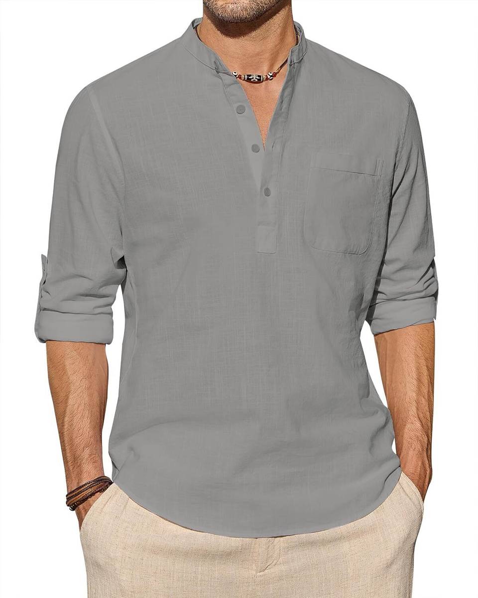 look with tailored trousers and loafers for a more polished appearance. The