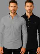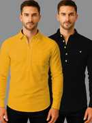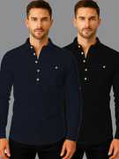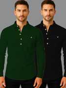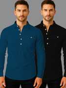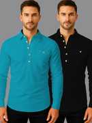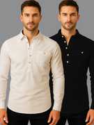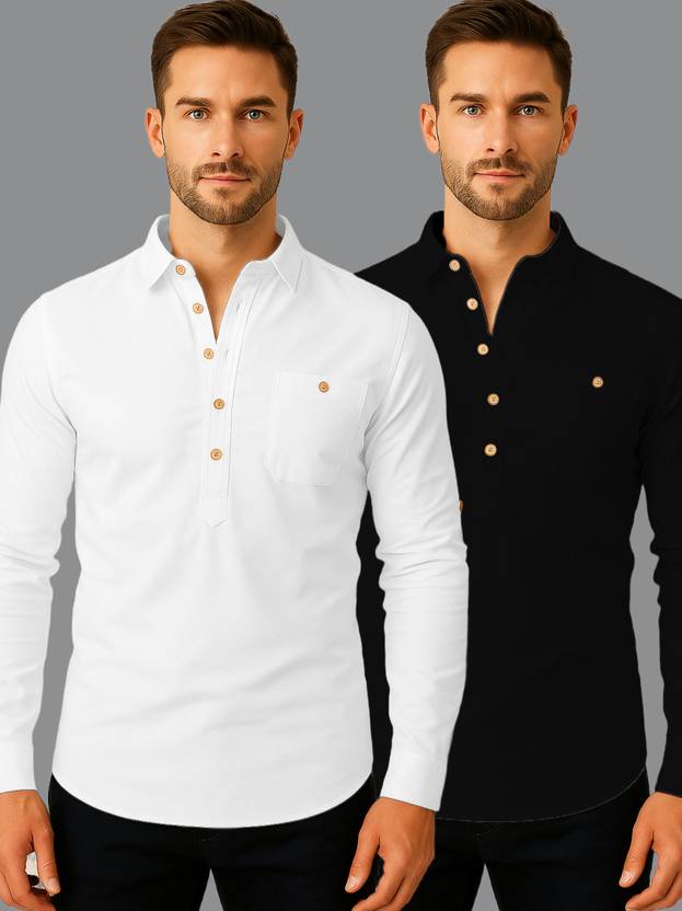 Pack of 2 Men Solid Cotton Blend Straight Kurta (White, Black)