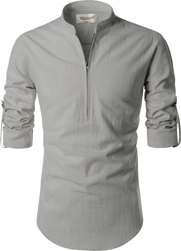 Vida LocaΒ Men Solid Pure Cotton Straight KurtaΒ (Grey)