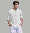This pure cotton beige short kurta is perfect for men who value style and comfort. Its versatile design makes it ideal for any occasion—festivals, parties, or casual outings. Product Details ?? ????? Gender: Men ?? Pattern: Solid ?? Design Type: Plain ?? Closure: Button ?? Sleeve: Full Sleeve (Roll-Up Option) ?? Waist Rise: Mid-Rise ?? Collar: Mandarin/Chinese ?? Hemline: Curved ?? Fabric: Pure Cotton ?? Product Length: Short ?? Pack of: 1 Material & Care ?? Fabric: 100% Cotton Wash: Suitable for hand wash and machine wash. How to Style ?? Pair it with dark-wash denim or linen trousers for a casual look. Dress it up with a pair of churidar or slim-fit pants for festive occasions. Add leather sandals or loafers and a wristwatch for a classy finish. Roll up the sleeves for a relaxed vibe during daytime events. This short kurta seamlessly blends traditional elegance with modern styling, making it a wardrobe essential for every man! ??