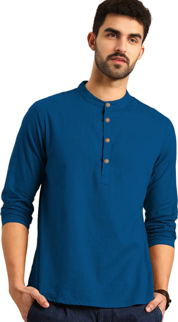 Vida Loca Men Solid Pure Cotton Straight Kurta (Blue)