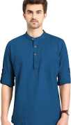 Men Solid Pure Cotton Straight Kurta (Beige)