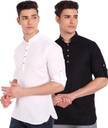 Pack of 2 Men Solid Pure Cotton Straight Kurta (White, Black)