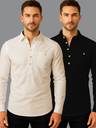 This pure cotton short kurta is perfect for men who value style and comfort. Its versatile design makes it ideal for any occasion—festivals, parties, or casual outings. Product Details 📋 👨🦰 Gender: Men 🎨 Pattern: Solid 🧵 Design Type: Plain 🔘 Closure: Button 👕 Sleeve: Full Sleeve (Roll-Up Option) ⬆️ Waist Rise: Mid-Rise 🪡 Collar: Spread Collor ✂️ Hemline: Curved 🌿 Fabric: Cotton Blend 📏 Product Length: Short 📦 Pack of: 2 Material & Care 🧺 Fabric: Cotton Blend Wash: Suitable for hand wash and machine wash. How to Style 🎯 Pair it with dark-wash denim or linen trousers for a casual look. Dress it up with a pair of churidar or slim-fit pants for festive occasions. Add leather sandals or loafers and a wristwatch for a classy finish. Roll up the sleeves for a relaxed vibe during daytime events. This short kurta seamlessly blends traditional elegance with modern styling, making it a wardrobe essential for every man! 👌"