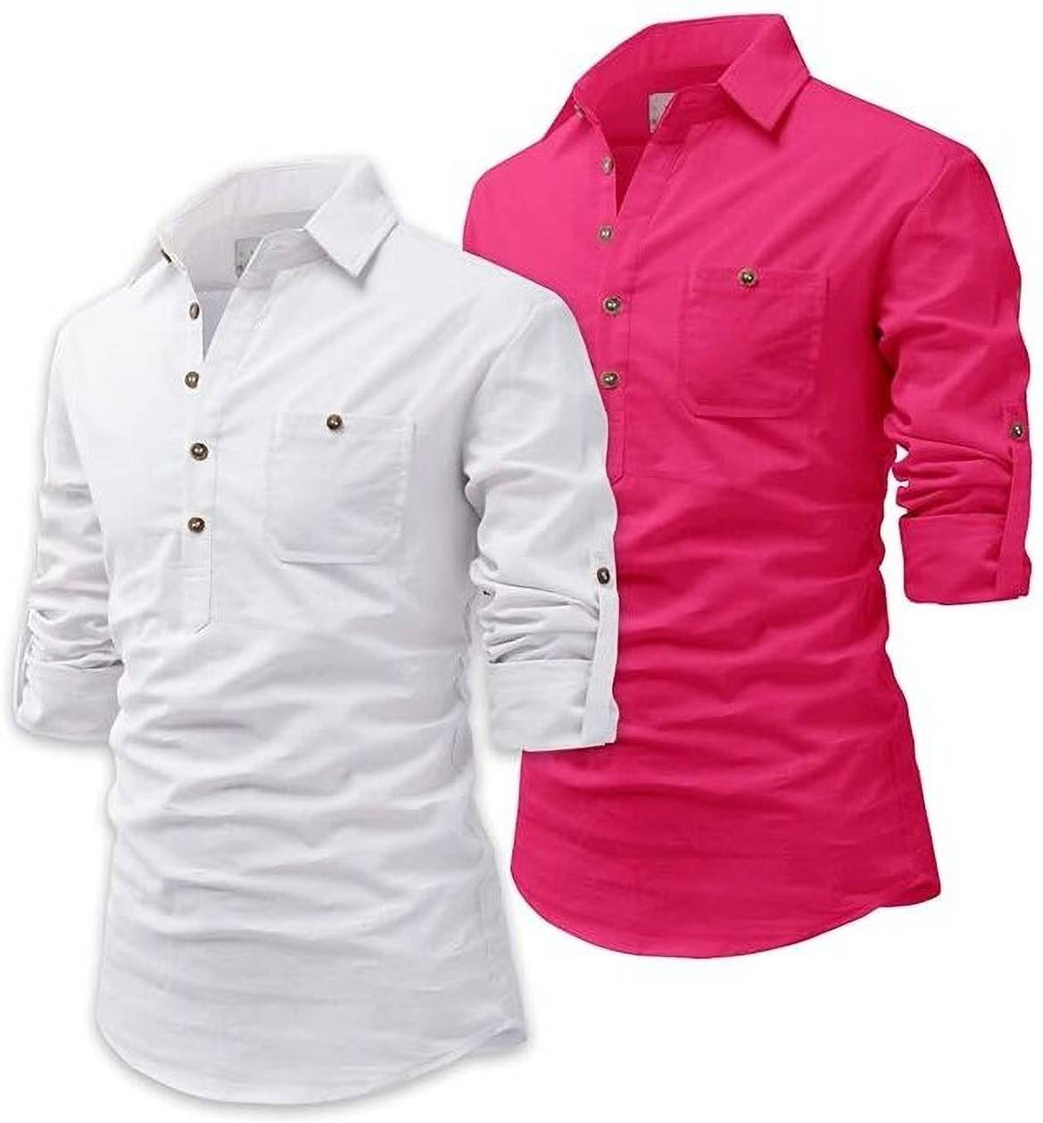GUYS HUBB Men Solid Straight Kurta (Pink)