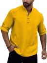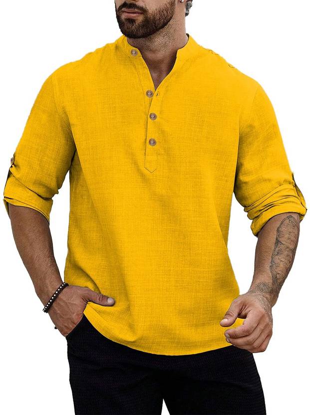DaReal Men Solid Cotton Blend A-line Kurta (Yellow)