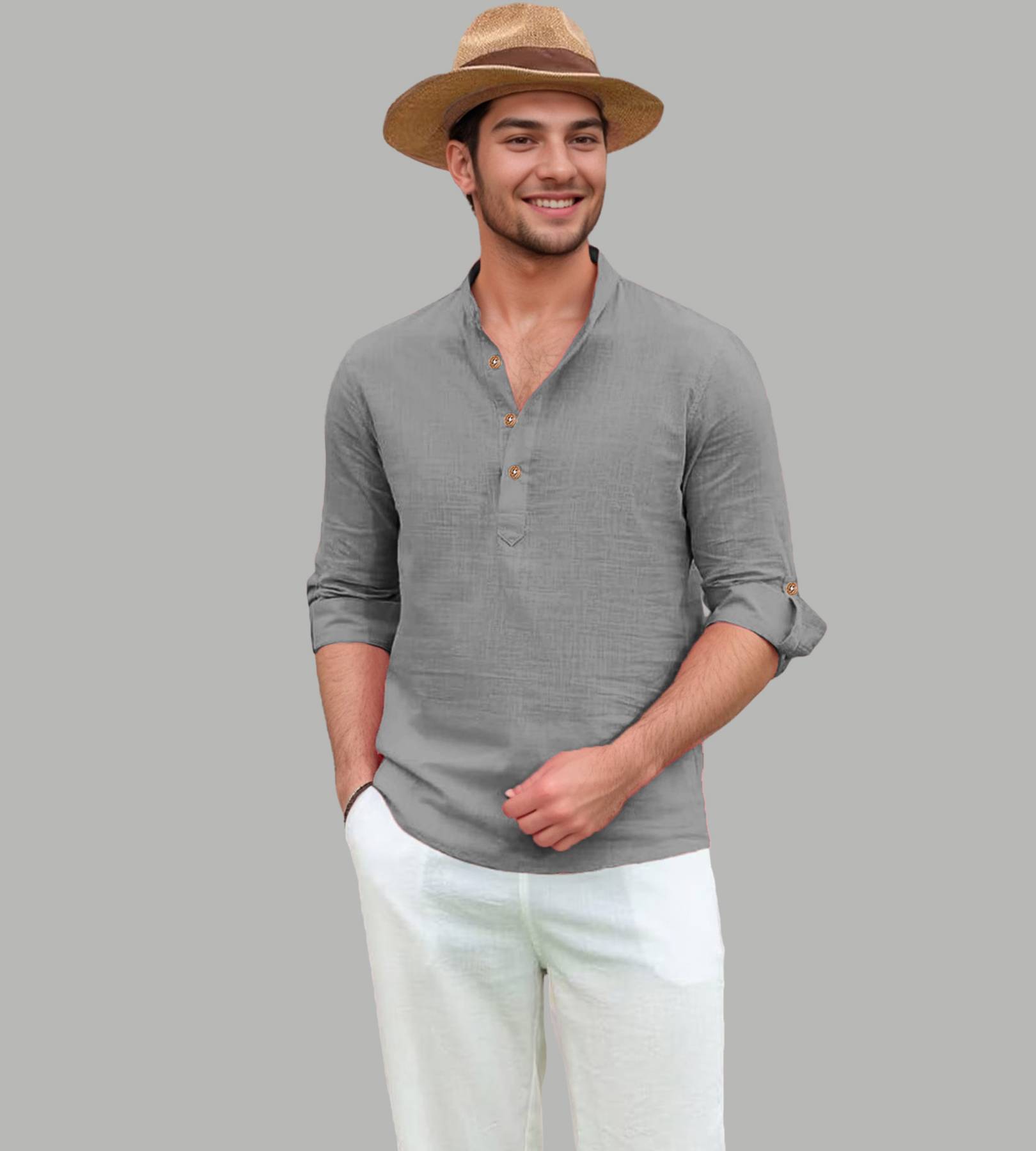 This pure cotton beige short kurta is perfect for men who value style and comfort. Its versatile design makes it ideal for any occasion—festivals, parties, or casual outings. Product Details ?? ????? Gender: Men ?? Pattern: Solid ?? Design Type: Plain ?? Closure: Button ?? Sleeve: Full Sleeve (Roll-Up Option) ?? Waist Rise: Mid-Rise ?? Collar: Mandarin/Chinese ?? Hemline: Curved ?? Fabric: Pure Cotton ?? Product Length: Short ?? Pack of: 1 Material & Care ?? Fabric: 100% Cotton Wash: Suitable for hand wash and machine wash. How to Style ?? Pair it with dark-wash denim or linen trousers for a casual look. Dress it up with a pair of churidar or slim-fit pants for festive occasions. Add leather sandals or loafers and a wristwatch for a classy finish. Roll up the sleeves for a relaxed vibe during daytime events. This short kurta seamlessly blends traditional elegance with modern styling, making it a wardrobe essential for every man! ??