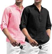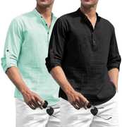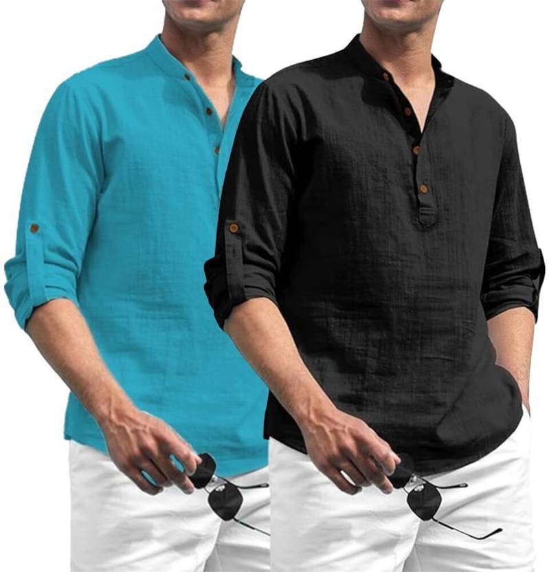 GUYS HUBB Men Solid Straight Kurta (Beige)
