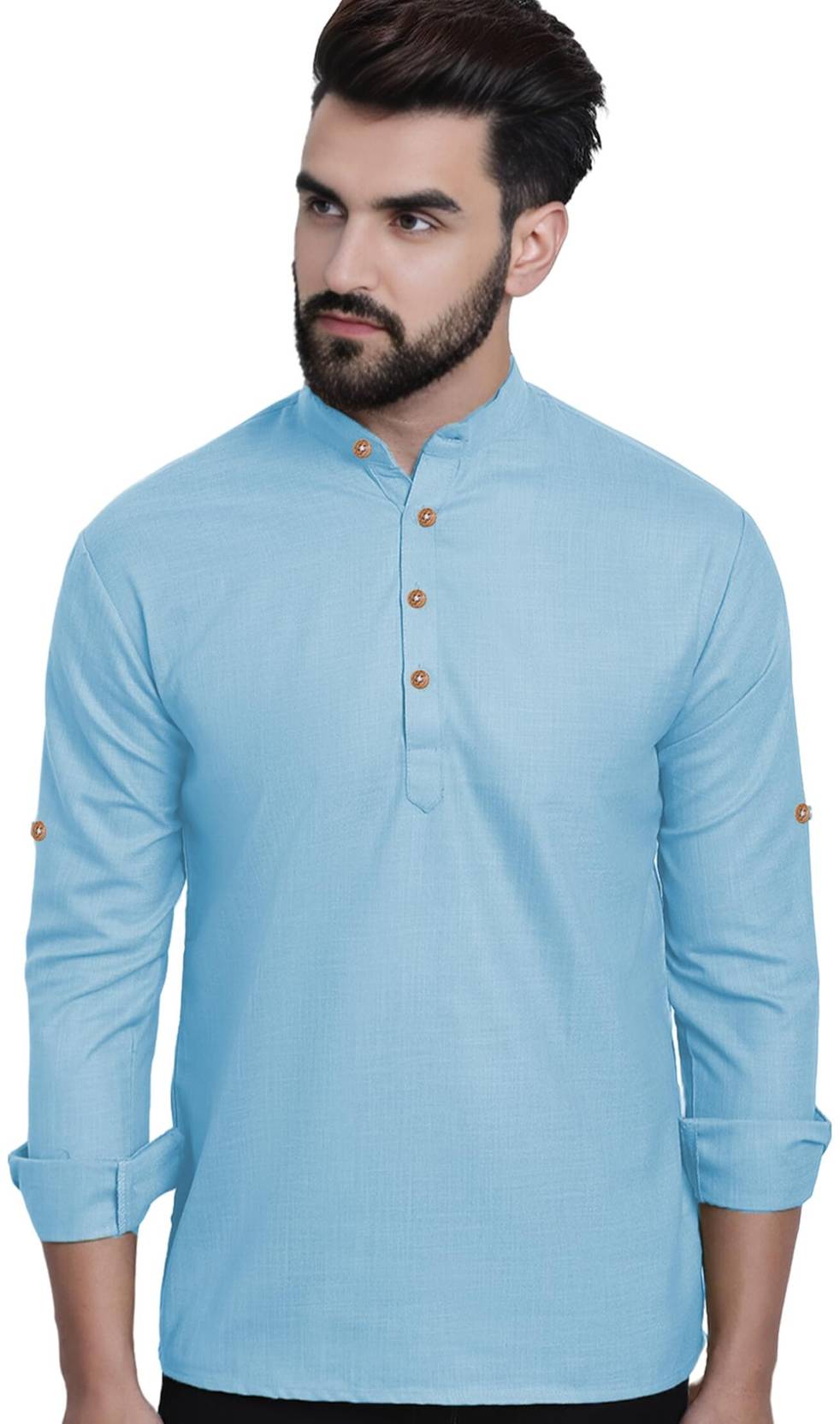 This Cotton Blend short kurta is perfect for men who value style and comfort. Its versatile design makes it ideal for any occasion—festivals, parties, or casual outings. Product Details 📋 👨🦰 Gender: Men 🎨 Pattern: Solid 🧵 Design Type: Plain 🔘 Closure: Button 👕 Sleeve: Full Sleeve (Roll-Up Option) ⬆️ Waist Rise: Mid-Rise 🪡 Collar: Mandarin/Chinese ✂️ Hemline: Curved 🌿 Fabric: Cotton Blend 📏 Product Length: Short 📦 Pack of: 1 Material & Care 🧺 Fabric: Cotton Blend Wash: Suitable for hand wash and machine wash. How to Style 🎯 Pair it with dark-wash denim or linen trousers for a casual look. Dress it up with a pair of churidar or slim-fit pants for festive occasions. Add leather sandals or loafers and a wristwatch for a classy finish. Roll up the sleeves for a relaxed vibe during daytime events. This short kurta seamlessly blends traditional elegance with modern styling, making it a wardrobe essential for every man! 👌"
