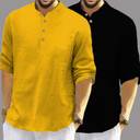 Pack of 2 Men Solid Cotton Blend Straight Kurta (Yellow)