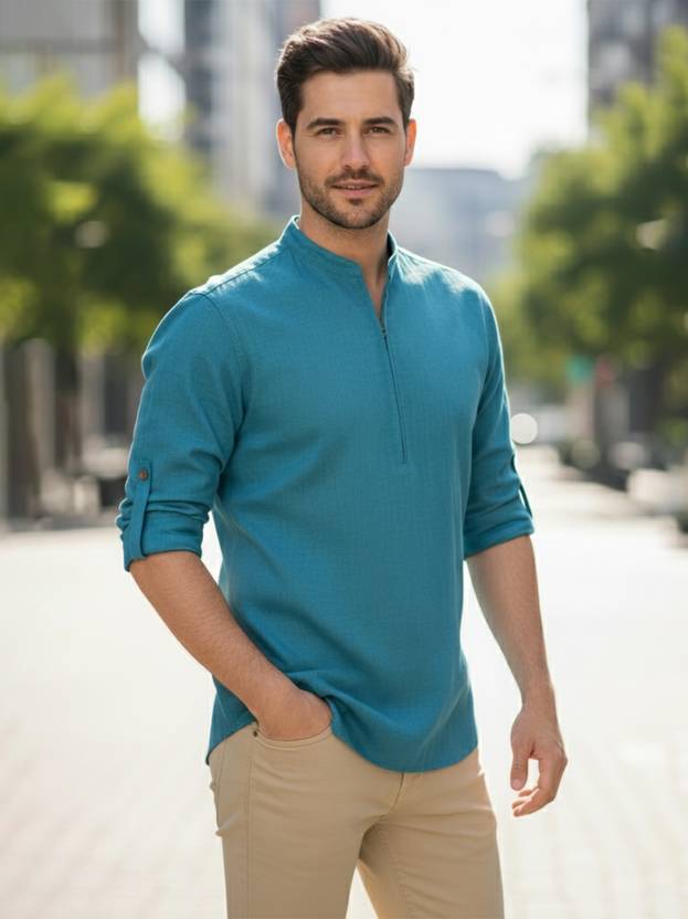 This Cotton Blend Short Kurta is perfect for men who value style and comfort. Its versatile design makes it ideal for any occasion—festivals, parties, or casual outings. Product Details 📋 👨‍🦰 Gender: Men 🎨 Pattern: Solid 🧵 Design Type: Plain 🔘 Closure: Zipper 👕 Sleeve: Full Sleeve ⬆️ Waist Rise: Mid-Rise 🪡 Hemline: Curved 🌿 Fabric: Cotton Blend 📏 Product Length: Short 📦 Material & Care 🧺 Fabric: Cotton Blend Wash: Suitable for hand wash and machine wash. How to Style 🎯 Pair it with dark-wash denim or linen trousers for a casual look. Dress it up with a pair of churidar or slim-fit pants for festive occasions. Add leather sandals or loafers and a wristwatch for a classy finish. Regular the sleeves for a relaxed vibe during daytime events. This shirt kurta seamlessly blends traditional elegance with modern styling, making it a wardrobe essential for every man! 👌