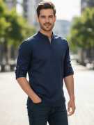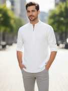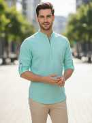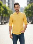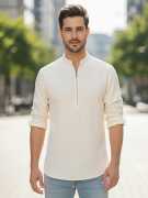 This Cotton Blend Short Kurta is perfect for men who value style and comfort. Its versatile design makes it ideal for any occasion—festivals, parties, or casual outings. Product Details 📋 👨🦰 Gender: Men 🎨 Pattern: Solid 🧵 Design Type: Plain 🔘 Closure: Zipper 👕 Sleeve: Full Sleeve ⬆️ Waist Rise: Mid-Rise 🪡 Hemline: Curved 🌿 Fabric: Cotton Blend 📏 Product Length: Short 📦 Material & Care 🧺 Fabric: Cotton Blend Wash: Suitable for hand wash and machine wash. How to Style 🎯 Pair it with dark-wash denim or linen trousers for a casual look. Dress it up with a pair of churidar or slim-fit pants for festive occasions. Add leather sandals or loafers and a wristwatch for a classy finish. Regular the sleeves for a relaxed vibe during daytime events. This shirt kurta seamlessly blends traditional elegance with modern styling, making it a wardrobe essential for every man! 👌