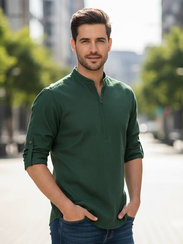 This Cotton Blend Short Kurta is perfect for men who value style and comfort. Its versatile design makes it ideal for any occasion—festivals, parties, or casual outings. Product Details 📋 👨‍🦰 Gender: Men 🎨 Pattern: Solid 🧵 Design Type: Plain 🔘 Closure: Zipper 👕 Sleeve: Full Sleeve ⬆️ Waist Rise: Mid-Rise 🪡 Hemline: Curved 🌿 Fabric: Cotton Blend 📏 Product Length: Short 📦 Material & Care 🧺 Fabric: Cotton Blend Wash: Suitable for hand wash and machine wash. How to Style 🎯 Pair it with dark-wash denim or linen trousers for a casual look. Dress it up with a pair of churidar or slim-fit pants for festive occasions. Add leather sandals or loafers and a wristwatch for a classy finish. Regular the sleeves for a relaxed vibe during daytime events. This shirt kurta seamlessly blends traditional elegance with modern styling, making it a wardrobe essential for every man! 👌