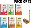 The Package contains 12 Packs of premium fragrance dhoop sticks ( ROSE , MOGRA , SANDAL , GUGGAL , LOBAN , KASTURI), Each box contains 9 fragrance sticks and there are 6 packs of each fragrance.