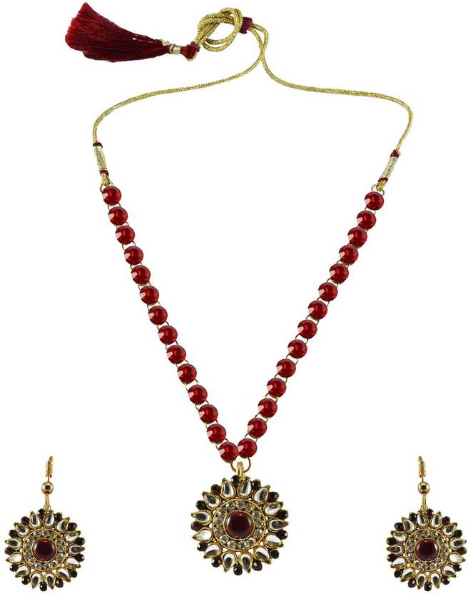 Multi Stone Stud-Gold Platted Brass Pendant Set ,Size- Free ,Material- Brass ,Pack Of- 3 ,Color- Multi ,Work- Stone Stud-Gold Platted ,Item- Pendant Set ,SKU- nec843