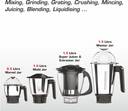 Available with four jars of varying capacities, including an up to 0.5 L marvel jar, a 1 L multi jar, a 1.5 L super juicer and extractor jar, and a 1.5 L master jar, this juicer-mixer-grinder is sure to add ease to your day-to-day cooking chores.